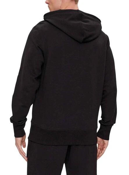 Sweat Calvin Klein Jeans. Modèle Institutional. Avec sweat à capuche. Couleur noir. Kangourou Poche. Broderie Logo. Extrémités côtelées.