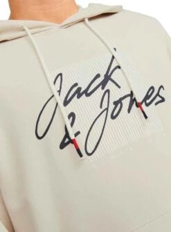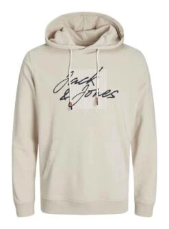 Sweat Jack & Jones. Modèle Zuri. Couleur beige. Col à capuche. Manche longue. Poignets et ourlet élastiques. Poche style kangourou. Tissu doux. Estampillé Logo.
