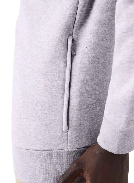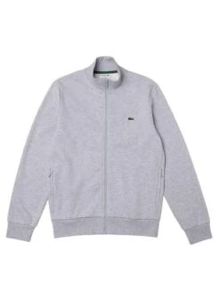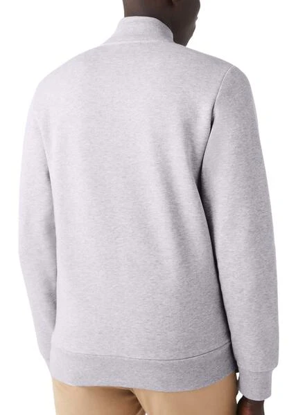 SweatLacoste. Modèle SH9622. Gris. Fermeture à glissière principale. Regular fit. Cou quelque chose. Poches zippées. Fabriqué en molleton de coton biologique. Logo brodé sur la poitrine.