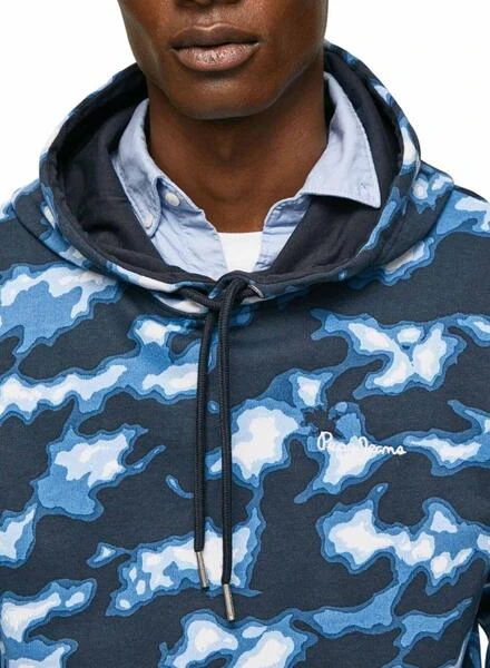 Camouflage Sweat de Pepe Jeans. Modèle Angel. Couleur marine. Printed camouflé. Capuche réglable avec cordon de serrage. Regular fit. Kangourou Poche. Terminaisons rainurées. Logo brodé sur la poitrine. Bande intérieure avec logo.