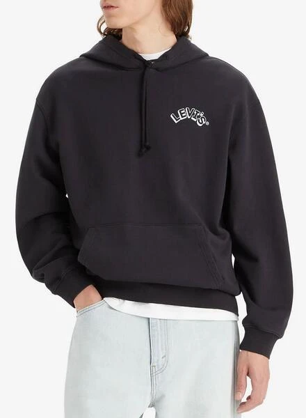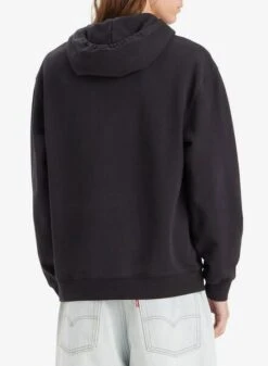 Sweat-shirt Levis. Relaxed Graphic. Couleur noire. Avec capuche ajustable avec cordons. Logo sur la poitrine. Poche kangourou. Épaules tombantes. Poignets et ourlet élastiques. Manches larges. Le modèle porte la taille M.