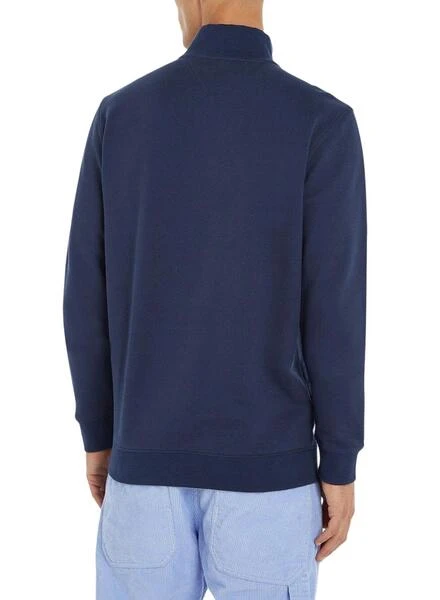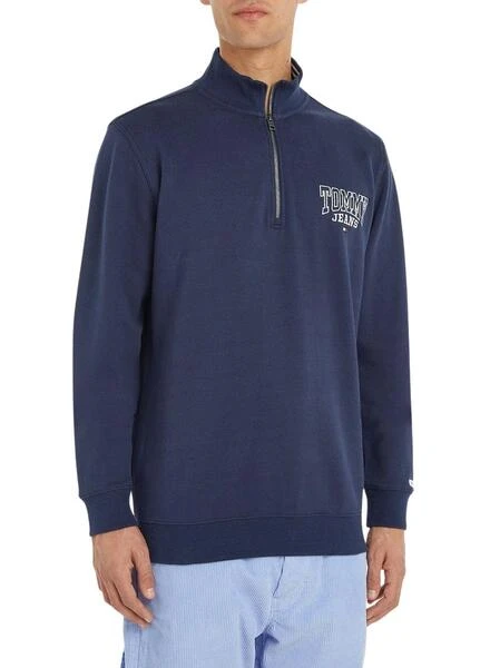 Sweat Tommy Jeans. Maquette graphique. Couleur bleu. Manche longue. Long cou. Demi-fermeture zippée. Marquage Logo sur la poitrine.