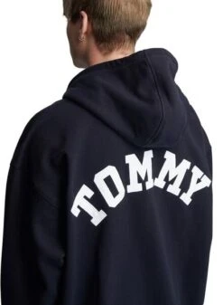 Sweat Tommy Jeans. ModÚle Zip. Couleur marine. Manche longue. Capuche réglable avec cordon de serrage. Broderie sur la poitrine et dans le dos. Fermeture éclair. 2 poches.