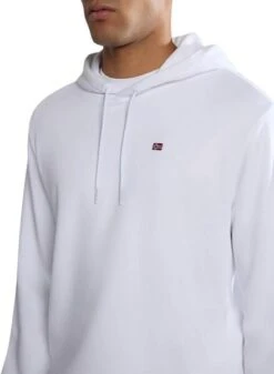 Sweatshirt Napapijri. Modèle Balis Sum. Couleur blanc. Capuche réglable. Coupe régulière. Manches longues. Détail avec logo brodé. Capuche ajustable. Le modèle porte la taille L et mesure 188 cm.