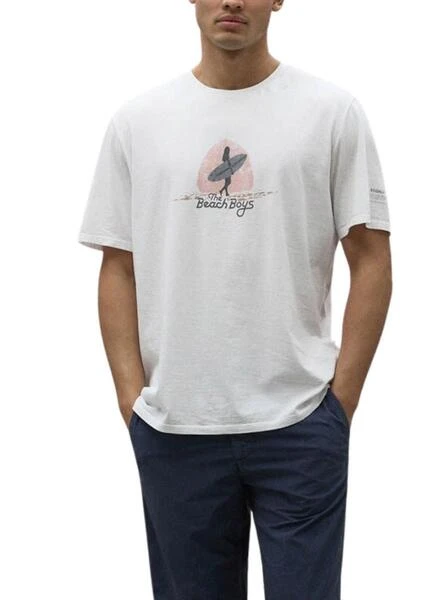 Maillot Ecoalf blanc avec design ‘Beach Boys’. Coupe ample. Manches courtes. Col rond. Col en cĂŽtes. Impression sur le devant. Logo Ecoalf sur la manche. VĂ©gĂ©talien.