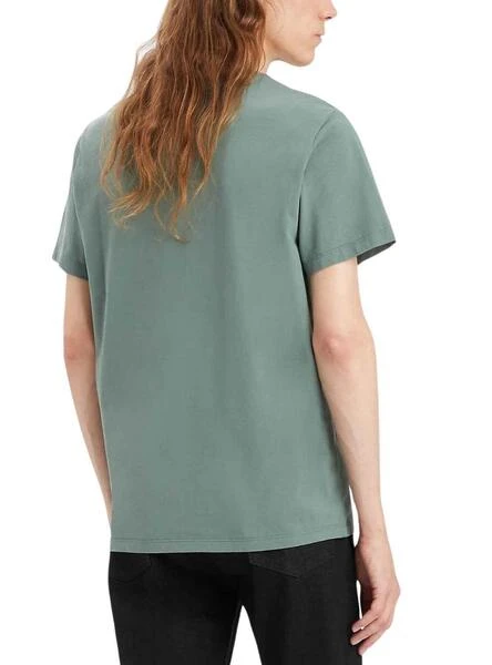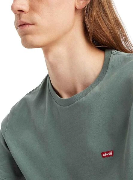 T-Shirt Levis. ModÚle original. Couleur vert. Manche court. Col rond. Marquage Logo sur la poitrine. Format régulier. Le mannequin porte la taille M.
