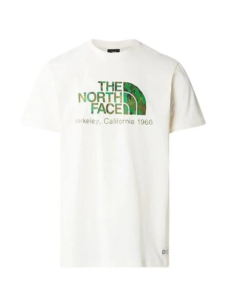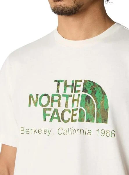 T-shirt The North Face. ModÚle Barkeley California. Col rond élastique. Logo sur la poitrine en vert. Coupe standard. Manches courtes. Le modÚle porte la taille M.